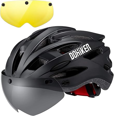 Dohiker Fahrradhelm All Round Helm 59 Bis 63cm Erwachsener Bike Helm Radhelm Mit Schwarz Gelb Brillen Abnehmbarer Visier Fur Damen Und Herren Schwarz Amazon De Sport Freizeit